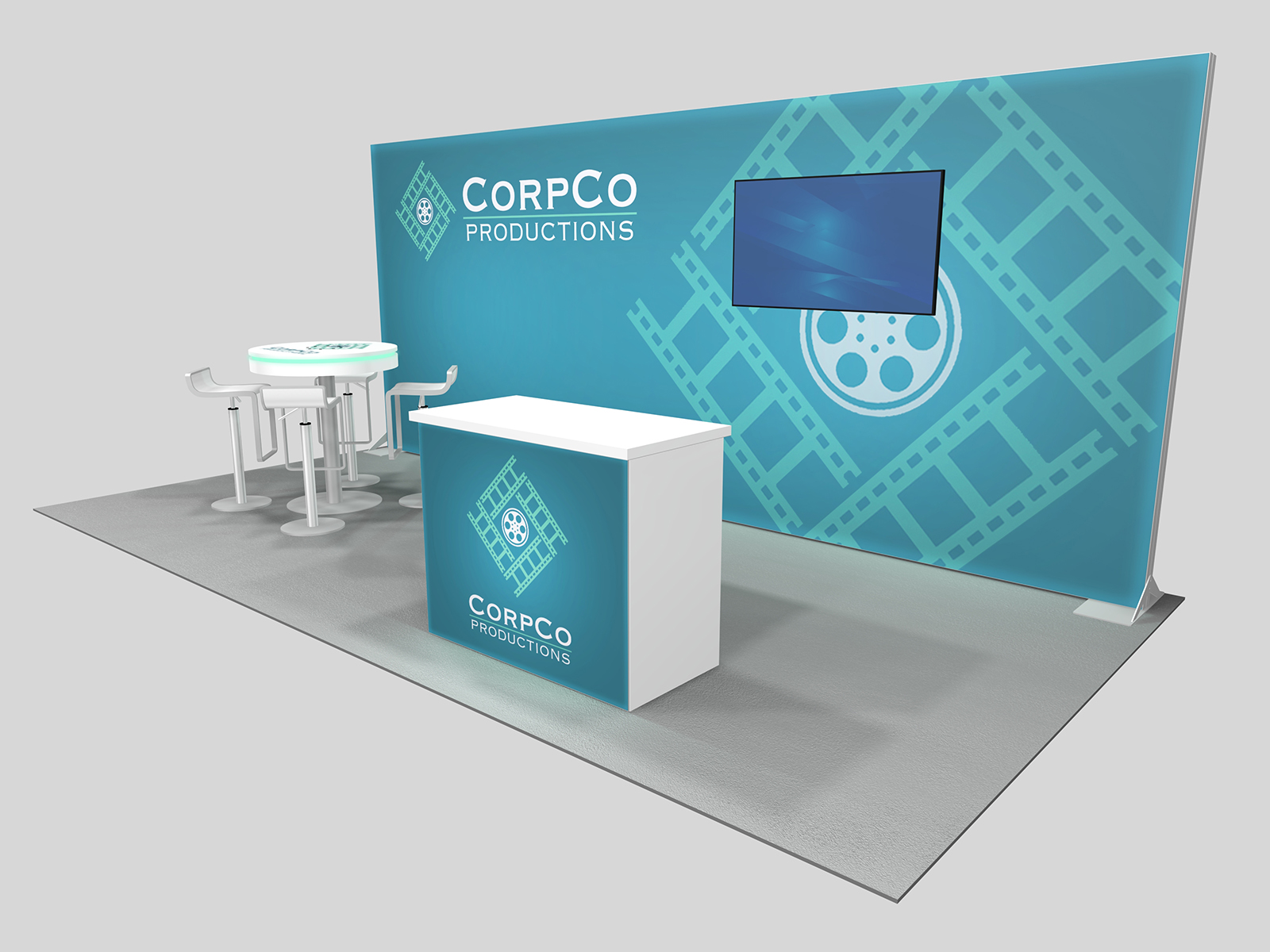 Rental trade show exhibits have graduated to the BIG TIME! For example, the RE-2163 is a big, bold exhibits constructed with an SEG engineered aluminum, silver anodized frame and brilliant LED lights. The exceptionally strong, yet lightweight frame, supports up to a 50 in. LED monitor. 10 ft. and 20 ft. lightbox versions are available. You won't believe your eyes the first time you see the high-resolution backlit fabric graphic.