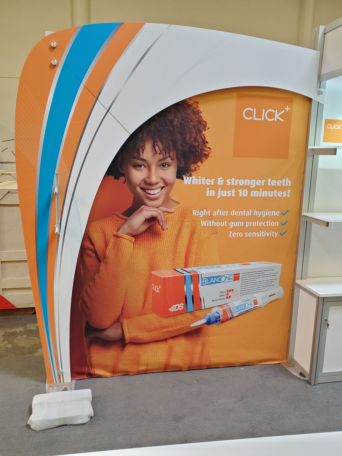 Custom Inline Exhibit with SuperNova Backlit Lightboxes, (4) Product Shelves, Storage Closet, Fabric and Direct Print Graphics, Reception Counter w/ Open Storage, and Counter w/ Locking Storage and Wireless Charging Pads Custom Inline Exhibit with SuperNova Backlit Lightboxes -- View 2 Custom Inline Exhibit with SuperNova Backlit Lightboxes -- View 3 Custom Inline Exhibit with SuperNova Backlit Lightboxes -- View 4 Custom Inline Exhibit with SuperNova Backlit Lightboxes -- View 5 Custom Inline Exhibit with SuperNova Backlit Lightboxes -- View 6