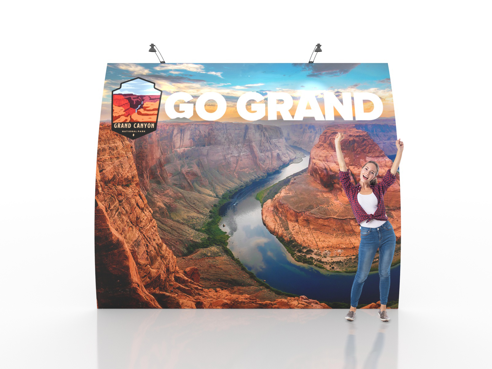 Tension fabric graphics attach to a frame so the fabric is taut edge-to-edge, creating “tension.” Typically, the graphic has Velcro hook sewn along the border, usually top and bottom, and attaches to Velcro loop on the frame. A silicone bead or welting can also be sewn to the edge of the tension fabric graphic. Those are referred to as Silicone Edge Graphics(SEG).